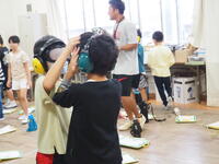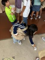 虫捕り網を使って夢中になって捕っていた子どもたち、生き物がいた場所の草を飼育ケースに入れて、大切に学校まで戻ってきました。
