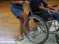 先日、4年生は総合的な学習の時間に、車いす体験をしました。