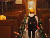 床板が木製だったりストーブがあったり、座席の上の網棚にも注目していた子どもたちでした。