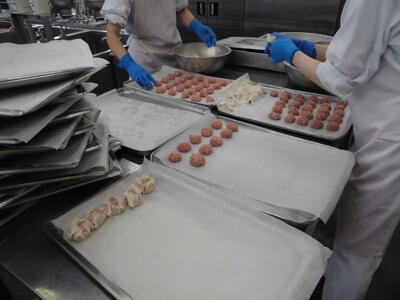 今日のシュウマイは給食室で手作りしました。