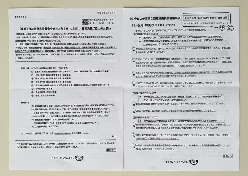 今年度最後の運営委員会は、書面決議で終了しました。ご協力いただいた学級長の皆様ありがとうございました。