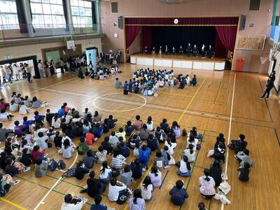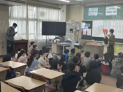 卒業まであと3日となった6年生に向けて、おはなしゆうびんの方々から絵本の朗読をプレゼント。