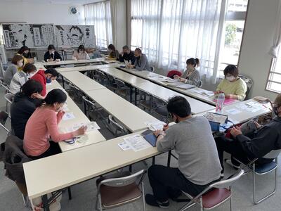 新年度の配布資料、委員決めスケジュール、新年度の「朝のひと声」活動など、話し合いました。