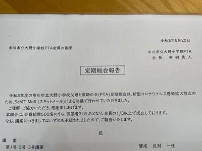 スキットメール決議によるPTA定期総会へのご参加、ありがとうございました。