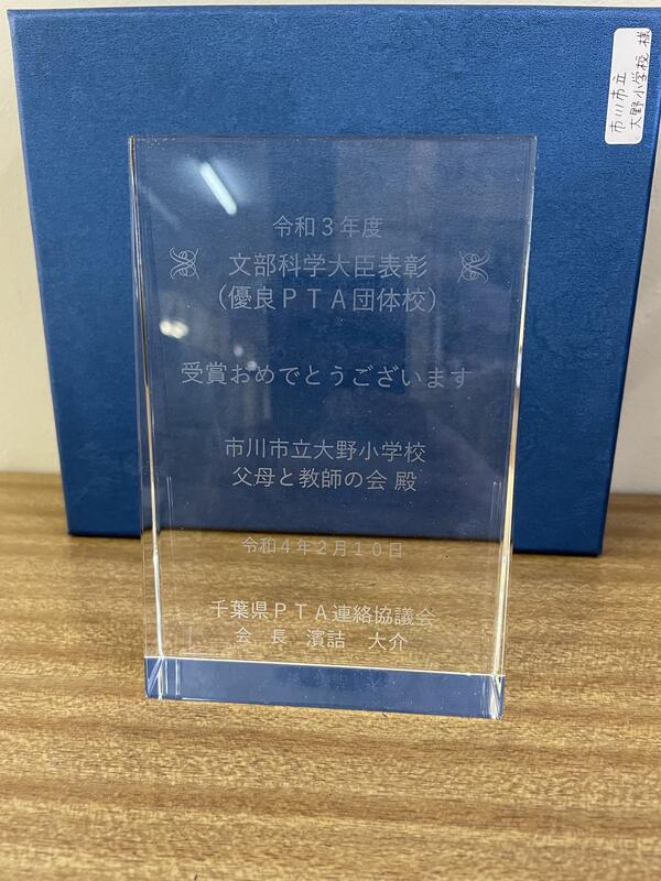 先日ご紹介した文部科学大臣表彰に関して、千葉県PTA連絡協議会様から記念のトロフィーを頂戴しました。