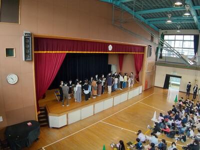 本日は離任される先生方とのお別れの会を開催し、今年度で大野小から離任される11名をみんなで送り出しました。