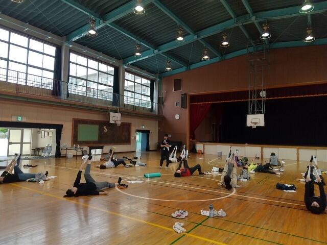 午前にみんなでストレッチをしてリフレッシュしてから、