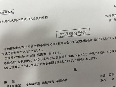 本日、お子さまを通して「令和5年度のPTA定期総会報告」のお手紙を配付いたしました。