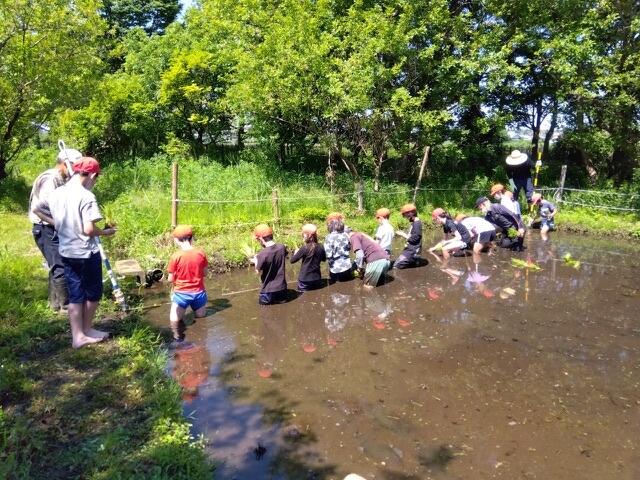 田植え作業は、簡単そうな作業にみえたけど実はすごく大変な作業だった、と興奮しながら話していて、もっと植えてみたいと言っていた積極的な子が多かったようです。