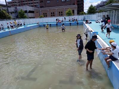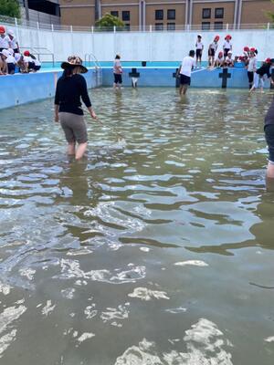 6月4日、保護者ボランティアにて3年生の授業の一環で、プールでヤゴ採集のお手伝いをおこないました。