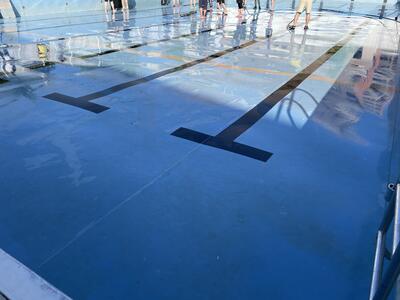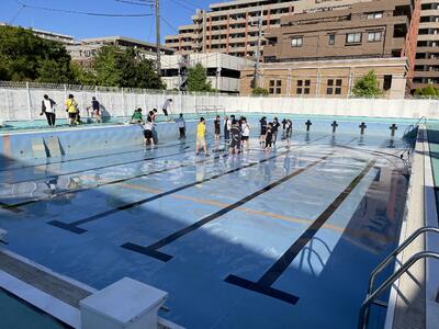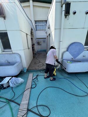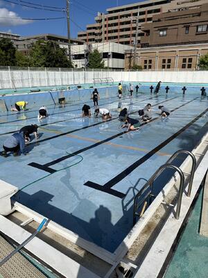 そして午後は同じくプールで水泳の授業前の清掃作業をおこないました。途中からは先生方も加わり約4時間。昨年以上にキレイなプールになったのではないでしょうか。高圧洗浄機、大助かりでした!