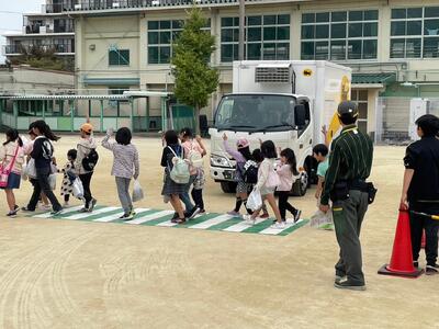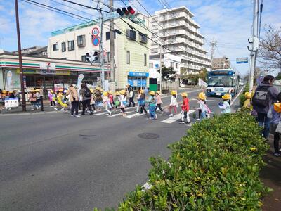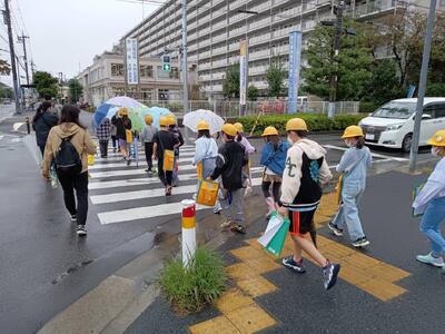 10月30日、3学年の校外学習でマルエツ見学にあたり、学校からマルエツまでの往復の交通安全見守りを、保護者ボランティアにておこないました。