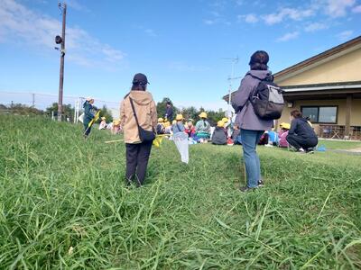 心配されていた雨も降らず曇り空の中、児童71名・未就学児11名・保護者18名・先生方10名・サポーター22名(副学級長・校外活動委員会・おとうさん委員会など)、総勢132名に参加いただきました。