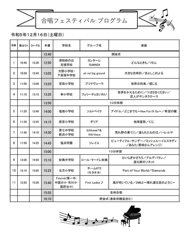 クリスマス前週の12月16日(土)、大野小コーラス部が市の合唱フェスティバルに参加します!