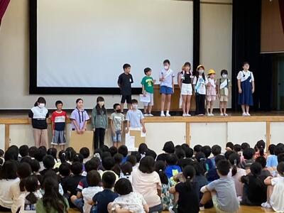 今日は冷房のついた体育館で「夏休み明け集会」を行いました。