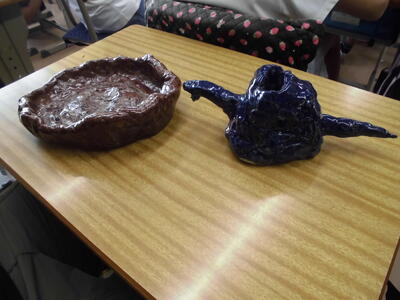 夏休み前に作成した陶芸作品が完成した姿で戻ってきました。