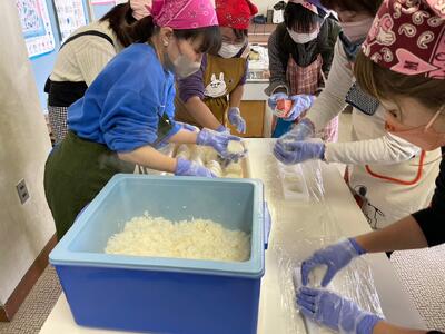 ◆豚汁とおにぎりを作っている様子(学校の家庭科室にて)