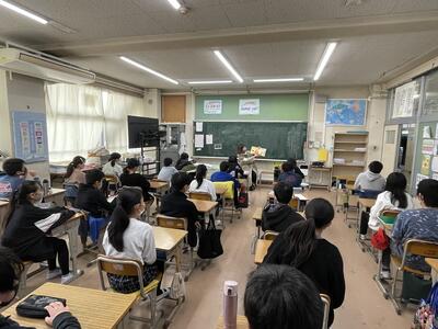 卒業まであと3日となった6年生に向けて、おはなしゆうびんの方々から絵本の朗読をプレゼント。
