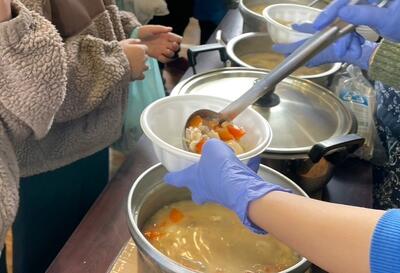 豚汁200食とおにぎり300個を、1時間ちょっとで作ってくれました