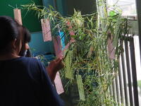 6月27日、岡本さんから笹をいただいたので、七夕コーナーを。