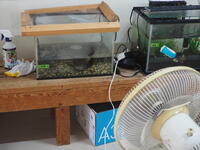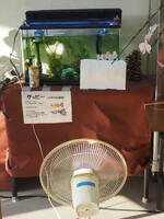 水の中の生き物たちも水温上昇を防ぐために扇風機の風を。