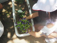 好きな花を3つ選び、ポットから外し、根をほぐしてプランターへ。