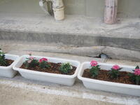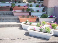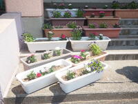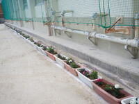 正門前の階段と校庭西校舎側にプランターを置きました。