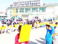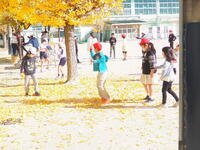教室、ピラミッド、昇降口の階段、イチョウの木の前・・・、学級ごとに思い思いの場所で撮影しました。