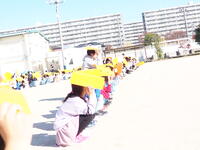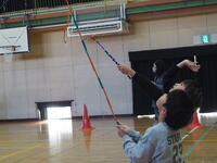 タイミングをつかむことができるように声をかけたり、跳べたことを「やったー!」と一緒に喜んだりと、とても楽しそうでした。