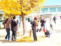 環境美化委員さんたちが、落ち葉掃きを始めました。