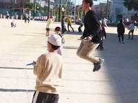 体育で取り組んでいることもあり、休み時間になると短縄を手に校庭へ。