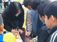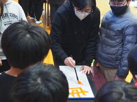 12月10日(火)、19日(木)と、公益社団法人の習字の先生方をお招きして、3年生以上の書初めの指導をしていただきました。