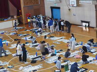 歯科医師さんたちが9人も来てくださり、検査にあたります。