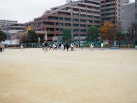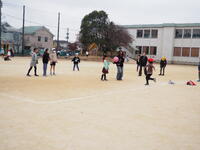校庭では、ドッジボールが。