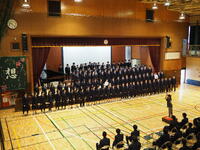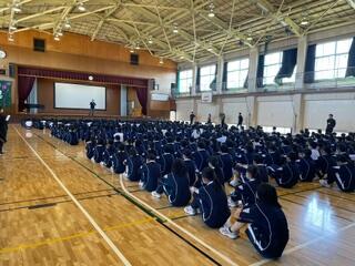 登坂先生からは、自身の経験から「最後までひとつのことをやり抜くことの大切さ」についてお話がありました。キックボクシングをやり抜いたことにより、今こうして大洲中の生徒との出会いが生まれていることに、先生自身が喜びを感じてくださっているそうです。今日は、長時間にわたり生徒に指導をしていただきありがとうございました。
