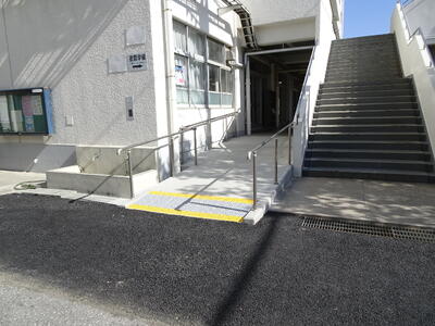 また、2月~3月にかけて職員昇降口脇と地域開放室・夜間学級昇降口側にスロープが設置され、より利用しやすい校舎になりました。