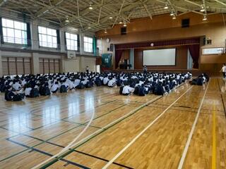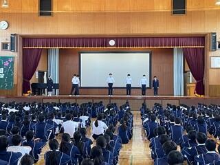 今回の部活動集会の内容は、「部活動の意義について」「部活動のルールの確認」でした。現在は、各部、春の大会の時期となっており、それが終わるともう3年生最後の大会となる総体です。有終の美を飾ることができるよう、頑張りましょう。