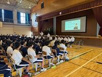 新入生オリエンテーションは、入学間もない新入生に、大洲中の生徒会本部・委員会・部活動などの組織を紹介する場です。新入生は、今日の放課後から部活動の仮入部、明日以降、クラスで学級組織決めになります。