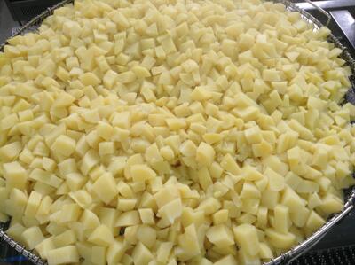 小さく切ってから、大きな回転釜で蒸していきます。