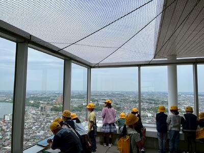 4月28日、3年生は市川市のことを学習するために、アイ・リンクタウンの展望台から市の様子を調べました。これまで何度か訪れ、景色を眺めていた子も、市のことに関心を持って見学することで新たな発見をしていました。
