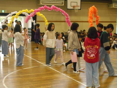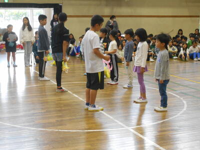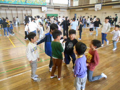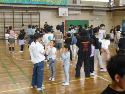5月2日、1年生を迎える会を開催しました。その後、ペア学年で歩き遠足に行く予定でしたが、あいにくの天候のため、ペア学年で交流し楽しく活動しました。どの子も笑顔があふれていました。