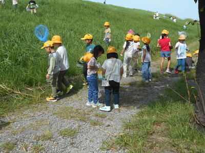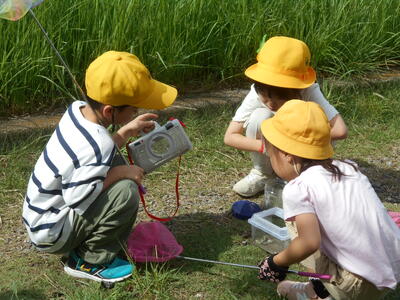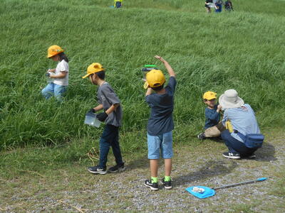 9月22日、1年生は生活科の学習の一環として江戸川の土手に行き、虫取りをしました。草むらの中を走り回りバッタを追いかけたり、網を使ってトンボを取ったりと、友だちと楽しく活動していました。