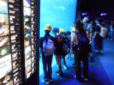 9月29日、5年生は新江ノ島水族館と日産自動車追浜工場に行きました。水族館ではイルカーショーを楽しみ、その後グループごとに館内を回り、海の生き物を興味深く観察しました。自動車工場では車の秘密を探り、興味深く組み立ての様子を見学しました。