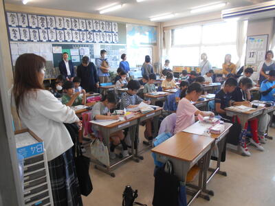 10月17日5校時に学習参観を開催しました。平日の午後でしたが、たくさんの保護者の方に足を運んでいただき、参観していただきました。おうちの方の姿を見つけると、いつもより嬉しそうに学習していました。