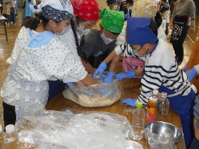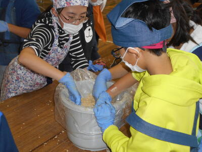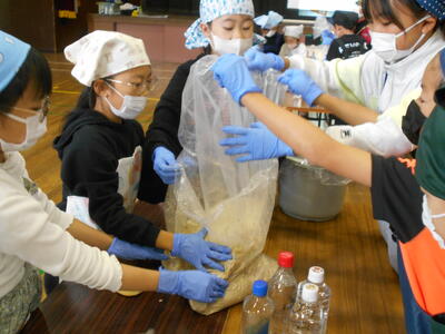 10月30日、5年生は味噌づくりに挑戦しました。佐倉市で長年味噌づくりに携わっている会社の方に来ていただき、栄養教諭の諸橋先生とともに作り方を教えていただきました。子どもたちは興味を持って積極的に活動しました。