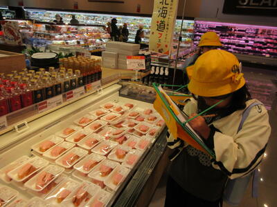 11月7日、3年生は社会科の学習を深めるために、スーパーマーケットの見学に行きました。普段見ることのできないバックヤードを見学させてもらい、お店の秘密を発見してきました。