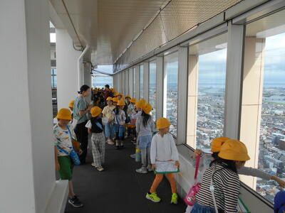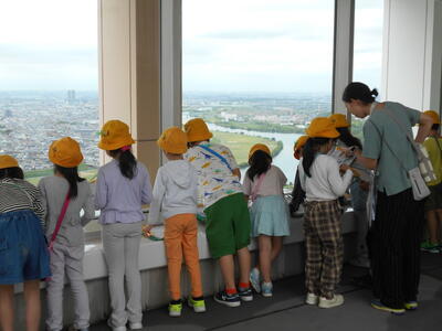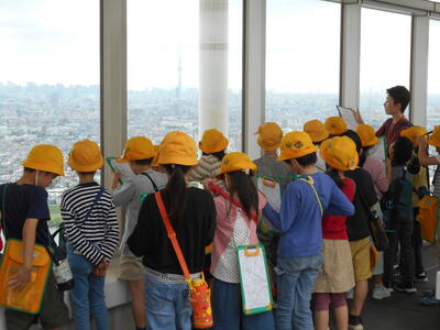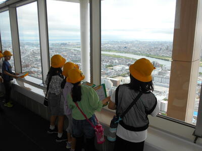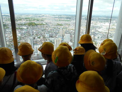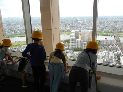 4月30日、3年生はアイリンクタウンの展望施設に行き、市川市内の様子を一望してきました。東西南北それぞれの景色を確かめ、市の様子をはじめ、遠くに見える海や筑波山、スカイツリーなども発見しました。