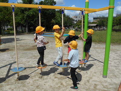 6月4日、1年生は大洲防災公園へ、探検に出かけました。1年生全員で出かけた公園は、普段遊びに行くときの目線と違い、新たな発見をすることができたことでしょう。楽しいひと時を過ごしていました。