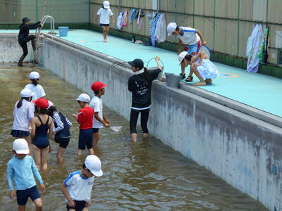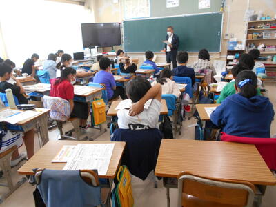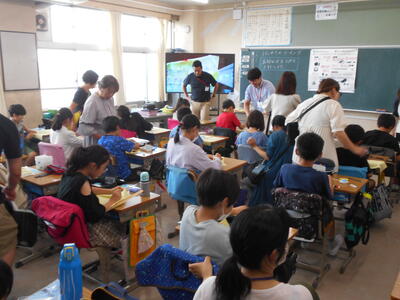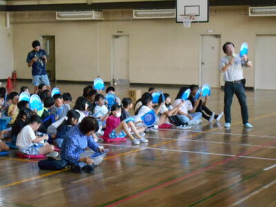 6月5日、4年生は体育館で星空教室、6年生はそれぞれの教室で租税教室、2年生はプールでやご取りと、たくさんの行事が開催されました。4・6年生は専門の先生からお話をいただき、学習を深めました。2年生は生活科の学習の一環としてヤゴを採集しました。