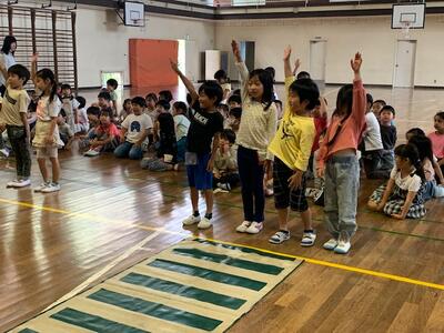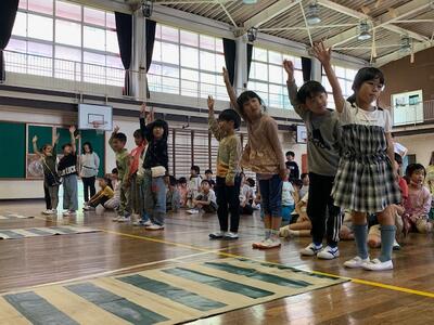 低学年の表現演技。練習をしてきたダンスを披露しました。